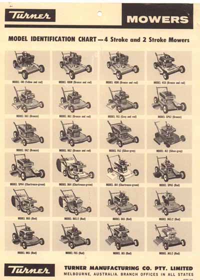 Back in the 50s and 60s everybody in this town was very loyal to our town based manufacturers, so nearly everybody had a Turner. They were the first with a Poly catcher which would have been a slap in the face for Victa. The last of the turner safety mowers were very advanced and a nice looking mower.